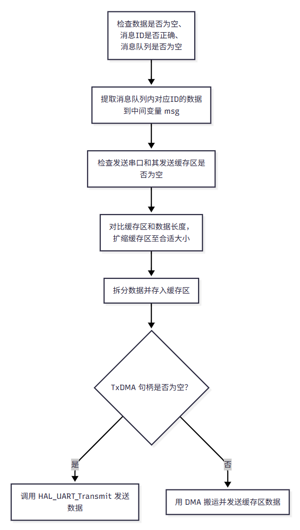 message_register_send_uart(msg_id_t msg_id, UART_HandleTypeDef *huart,uint32_t buf_size)注册串口消息通讯句柄; - 调用