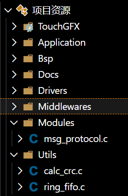 在项目文件夹中创建Modules,在User文件夹中创建Utils,如图放置通信协议所需文件