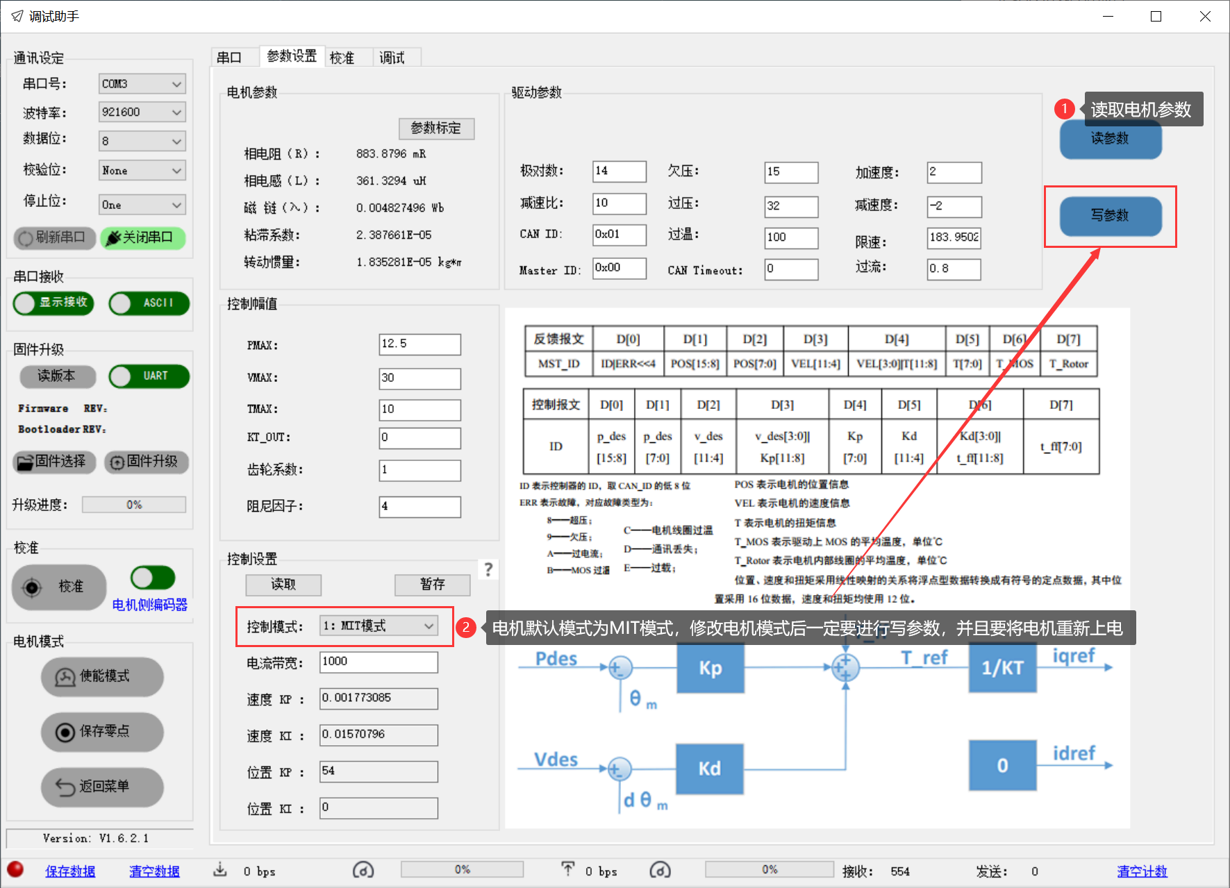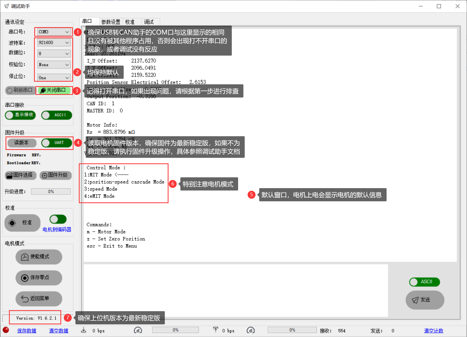 电机模式的切换必须在上位机中进行,只在代码中无法更改!!比如在上位机中修改为MIT模式,代码中只能使用MIT模式。