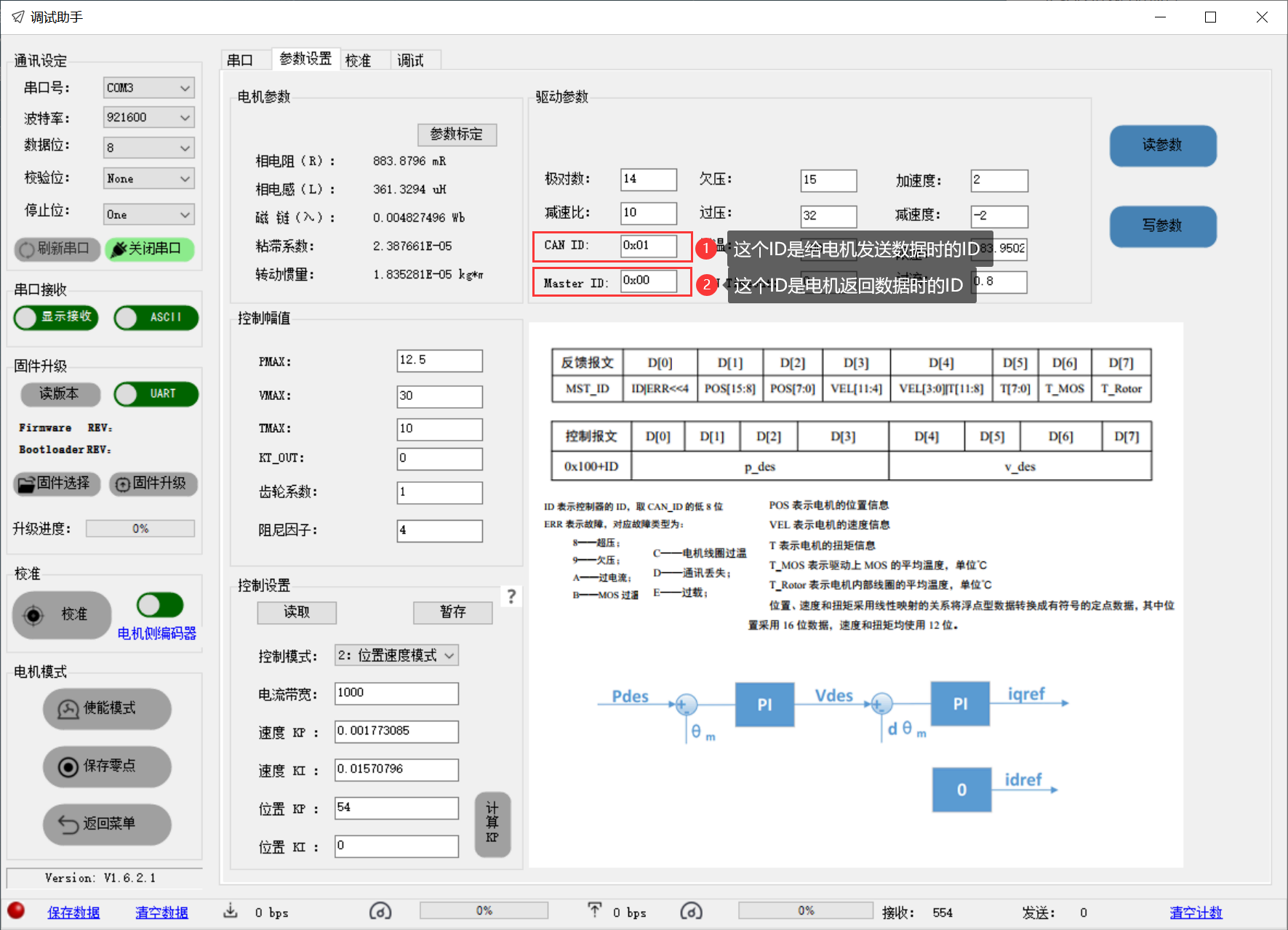 - 模式抽象:针对三种控制模式,驱动内部实现了 ID 偏移计算与数据打包逻辑。例如,MIT 模式使用基础 ID,而位置速度模式会自动增加