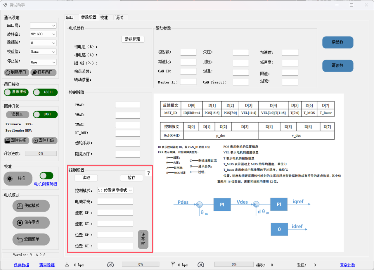 - 位置速度模式:该模式的位置环和速度环的KP和KI不在调试界面,在参数设置界面,该模式实现以给定速度匀速转到目标位置。