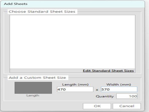 实验室常用的雕刻板是520×620,由于需要进行固定,以及设备限制等各种因素,实际能进行工作的区域只有470和570(必须填实际能进行工作的区域),若是其他尺寸的板,需要自己进行测量,设置好后点OK就行(长填短边时零件排版为竖直排列,填长边时为水平排列)