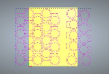 如果不选择multiple选项,而是single,所有的零件都会保存到同一个DXF文件里,这时在导入ARTCAM设置好实际板子的大小时,雕刻的零件区域会超出板的边界,如下