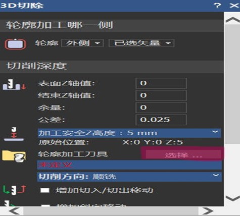 2.结束Z轴深度:比所要雕的板件的厚度多增加0.5mm即可,例如3mm的板,填-3.5,真正决定刀雕刻深度的设置,千万别忘了加负号