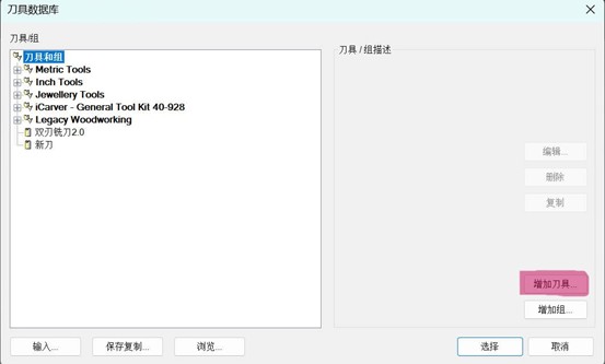 3.刀具的选择:调好刀具的参数后,选刚刚增加的刀具即可