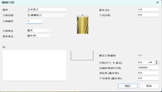 将刀具的参数按如下进行设置,刀具的直径需要按实际购买的刀具直径进行设置,其他不变,结束后点确定