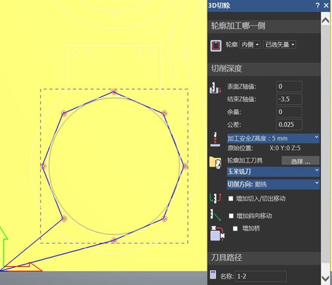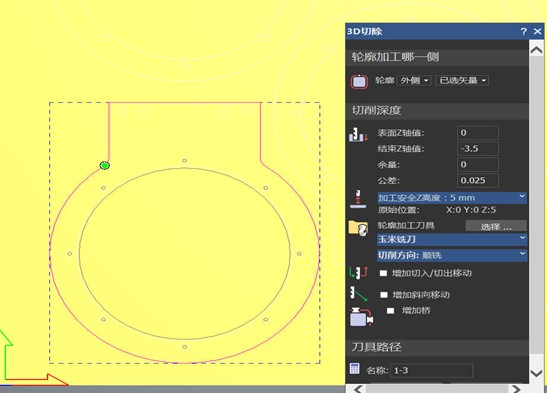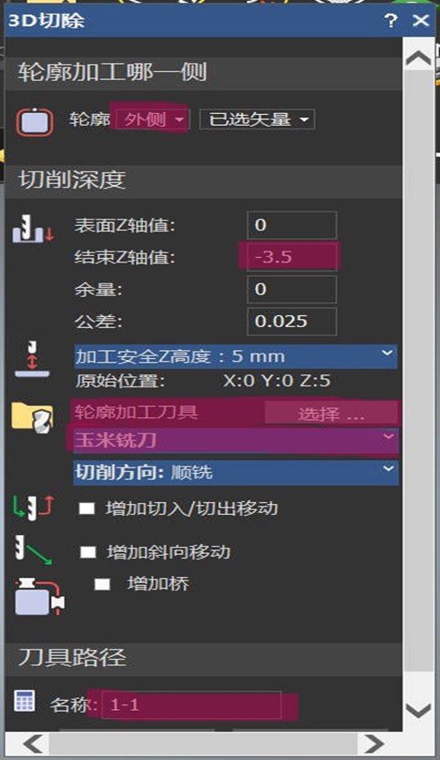 最重要的几个刀具设置:内外侧,结束Z轴深度,刀具的选择,名称