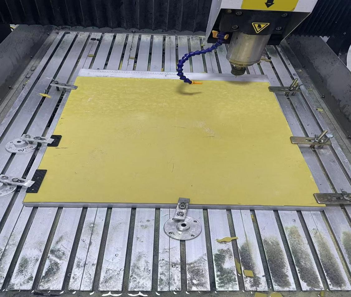 (如图,固定后,因为夹具和设备原因常常需要一些小尺寸的板垫着来补偿厚度)