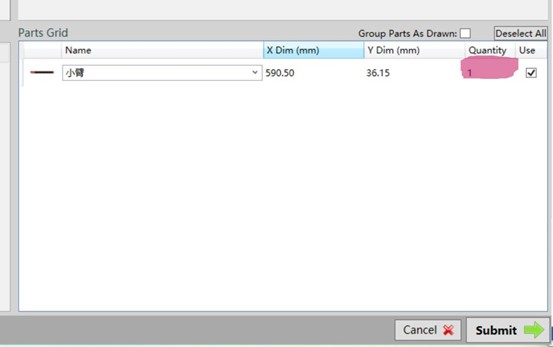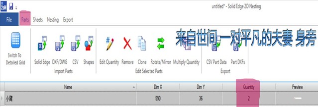 数量的设置(导入零件后会自动进入数量设置的页面),双击quantity下的数即可更改